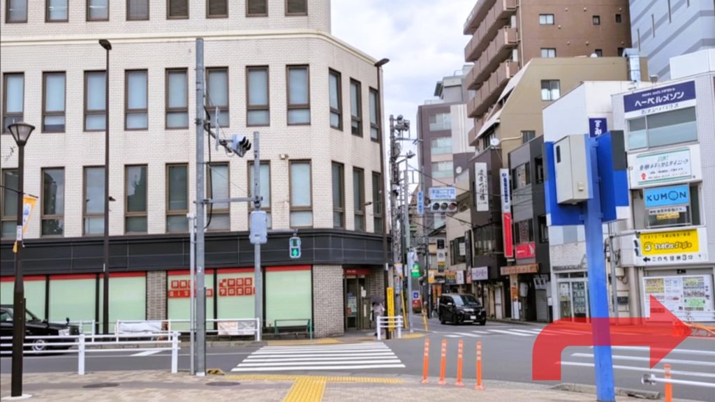 5. UFJ銀行がある「本町二丁目交差点」まで来たら、右折して横断歩道をお渡りください。